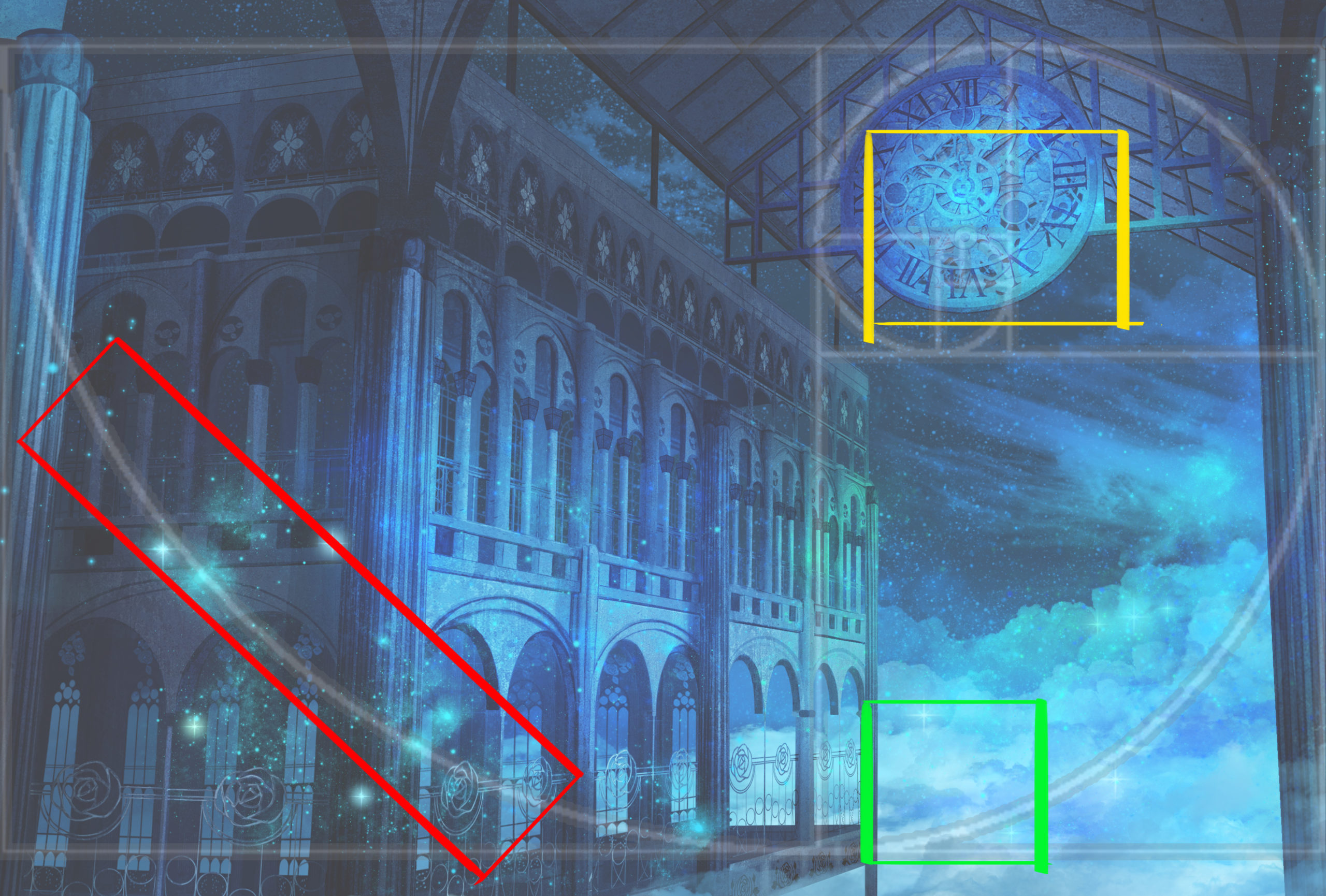 このように実在しない風景(ファンタジー)を描く際、黄金比はかなり使えると思います。